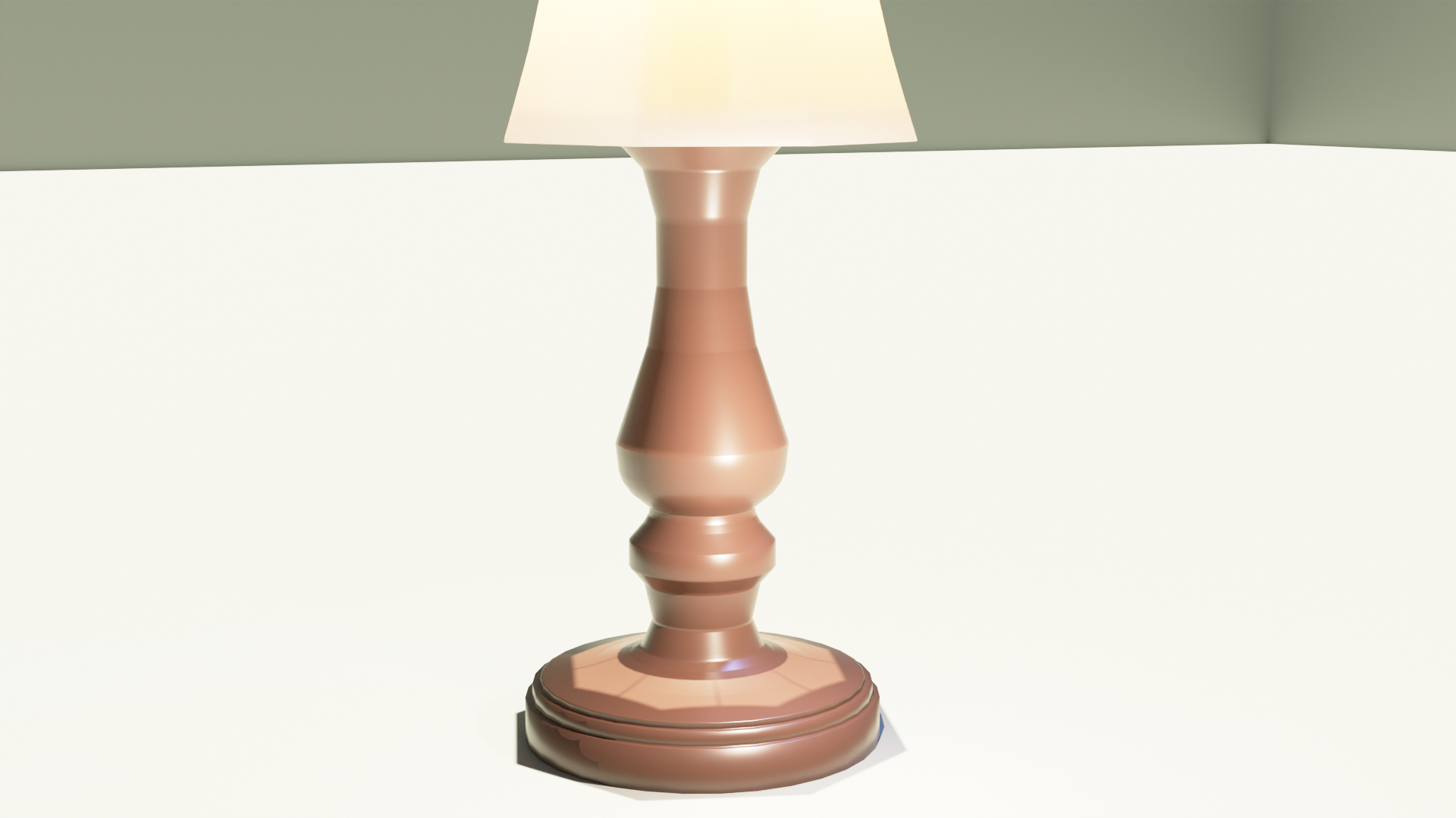 A beautiful classic antique style lamp with all of the necessary parts like the finial, harp, base, bulb, and the lamp shade. All of these parts are textured to suite the simple night atmosphere, this model will do very well in interior settings, and gives a nostalgic comfortable, cozy, or home-like feeling to your space.